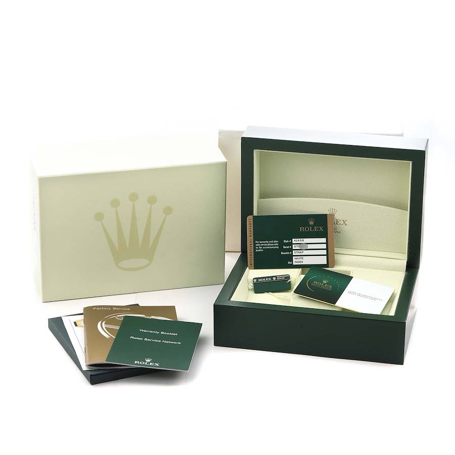 Bracelet: Black custom leather strap with Rolex 18K yellow gold deployant buckle.