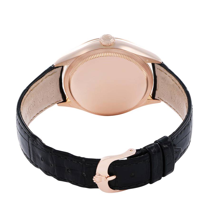 Case: 18K rose gold round case 39.0 mm in diameter. Rolex logo on the 18k rose gold crown.