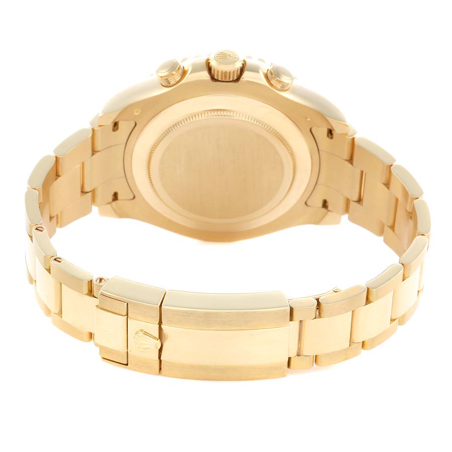 Case: 18K yellow gold oyster case 44.0 mm in diameter. Two 18k yellow gold pushers operate the chronograph functions. Pointed crown guards. Rolex logo on the 18k yellow gold screw-down crown.