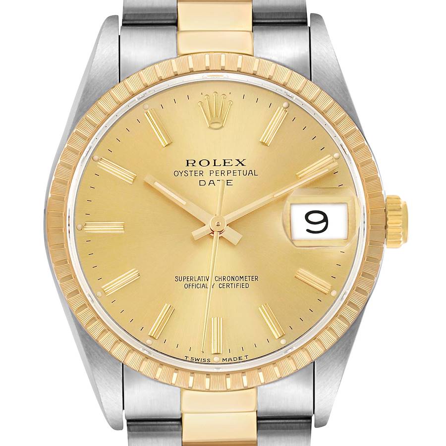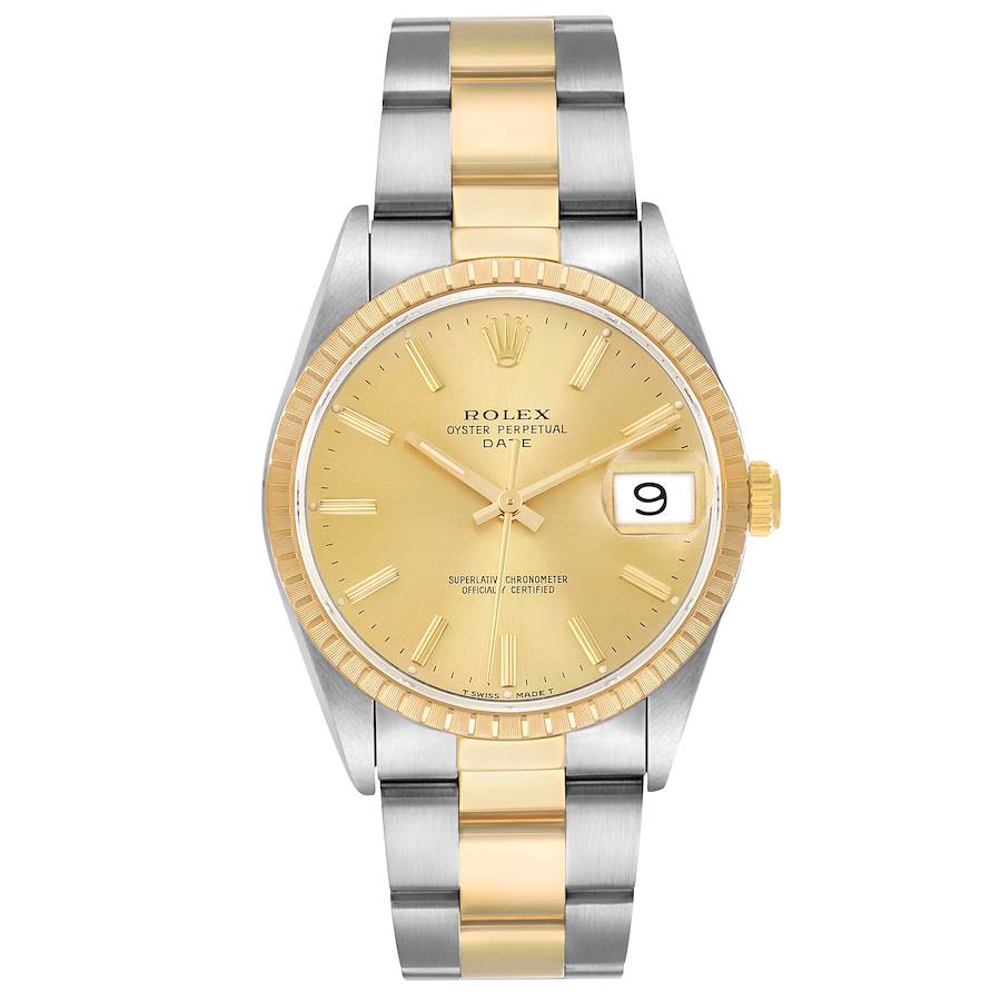 Model Name: Replica Rolex Date Steel Yellow Gold Champagne Dial Mens Watch 15223