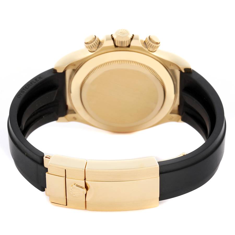 Bracelet: Black rubber Oysterflex strap with an 18K yellow gold flip-lock clasp.