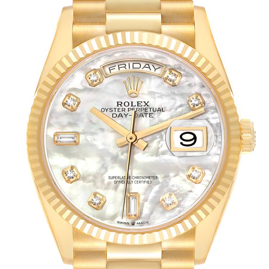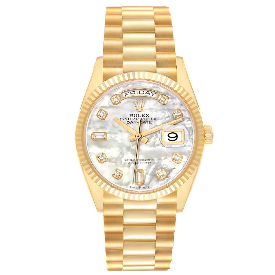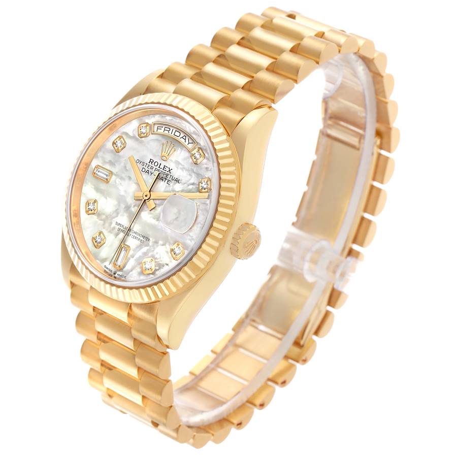 Model Name: Replica Rolex President Day-Date Yellow Gold Mother Of Pearl Diamond Dial Mens Watch 128238