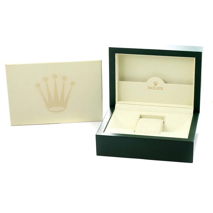Dial: Slate dial with original Rolex factory diamond and sapphire hour markers. Luminescent yellow gold Mercedes hands. Luminescent yellow gold lollipop-tipped centre seconds hand. Date calendar at the 3 o'clock aperture. Outer minute marker track.
